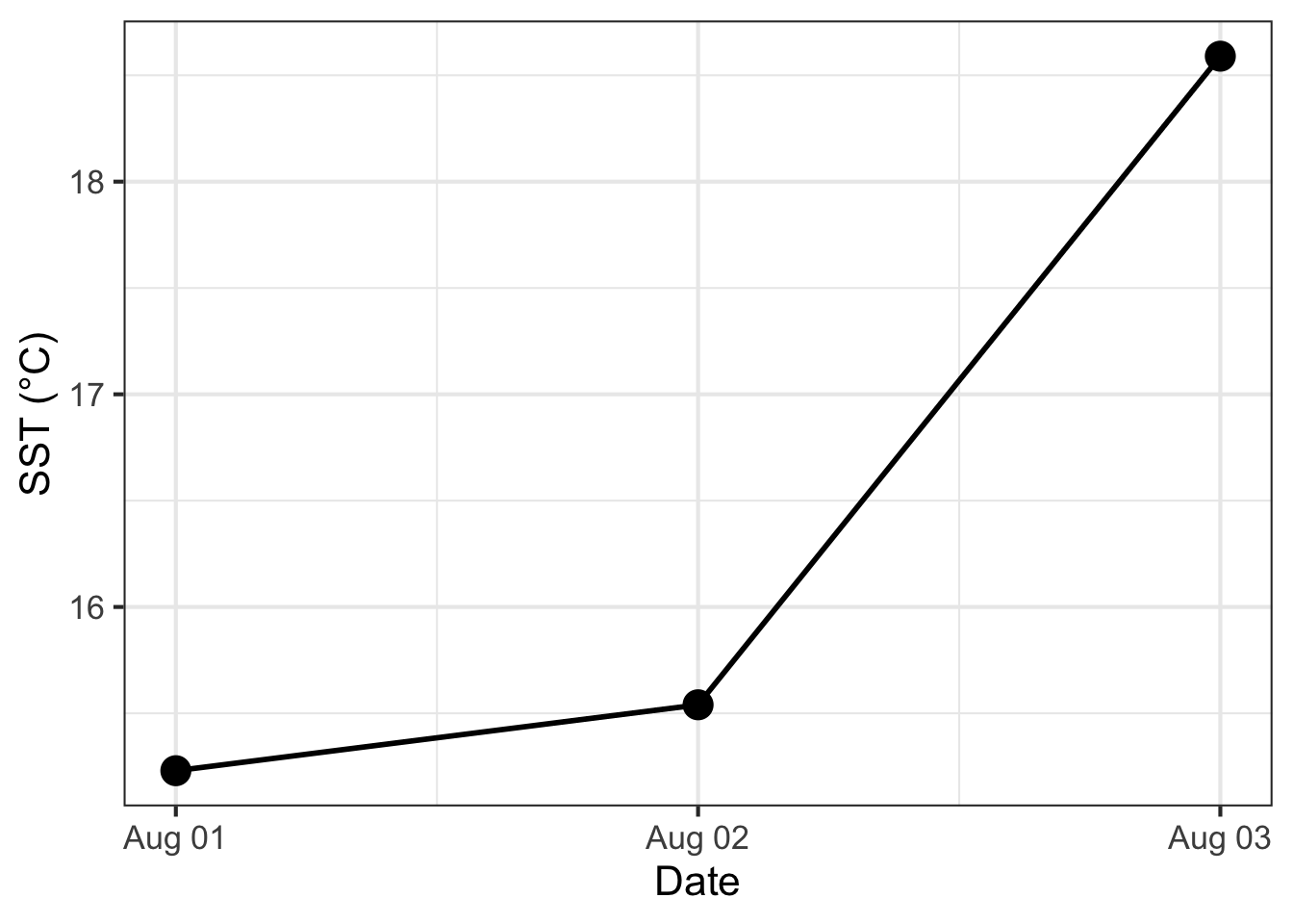 - Access most recent day of ROMS sea surface temperature (SST) data via OpenDAP server